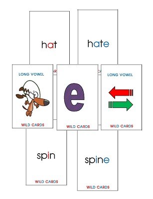 The Split Digraphs Wild Cards game provides practice in distinguishing between words containing short vowels and long vowels made by the split digraphs of a vowel plus an ‘e’ (a-e as in cake, e-e as in Pete, i-e as in kite, o-e as in bone, u-e as in flute).